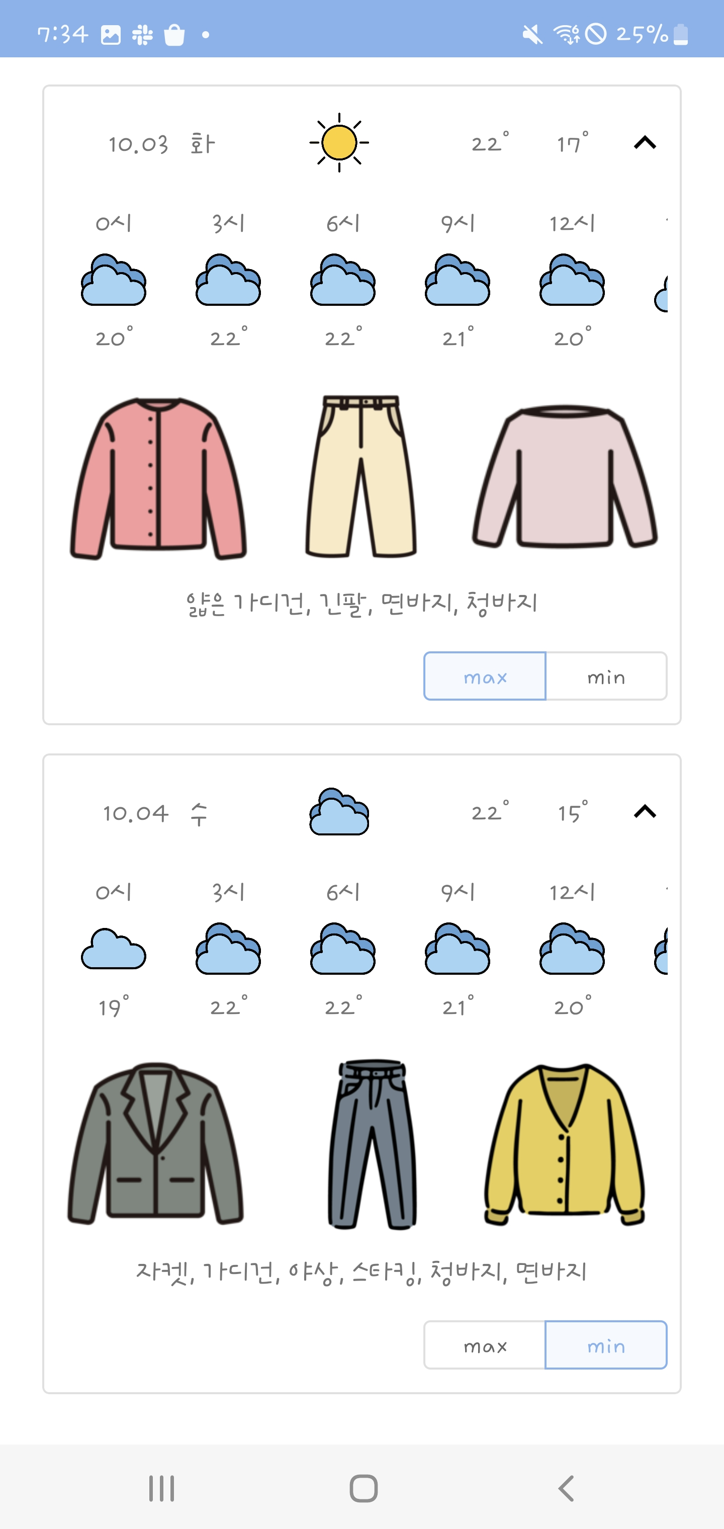 ’그냥 날씨 어플에 기온별로 같이 좀 나와주면 안되나?‘