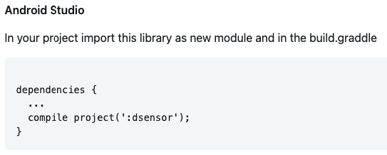 dependencies { implementation project(':libs:dsensor') }그 다음에는 잘 아는대로 종속 항목을 추가해주면 된다.