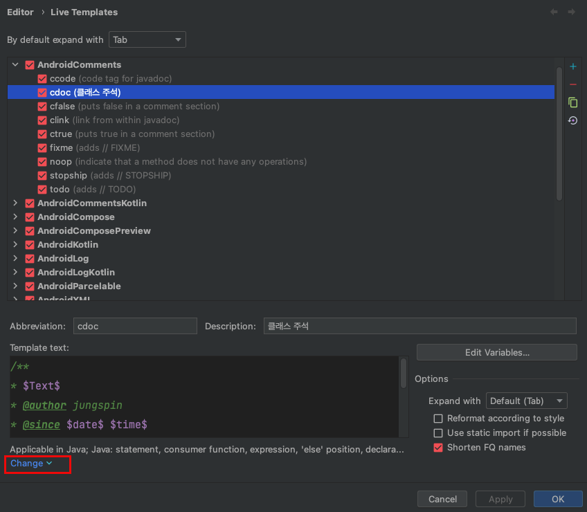 그때 필요한 것이 바로 IntelliJ에서 제공하는 Live Template이다.