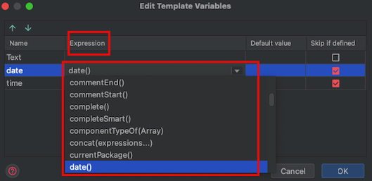 라이브 템플릿을 사용하여 루프, 조건, 선언 또는 인쇄 문과 같은 일반적인 구문을 코드에 삽입하세요.
